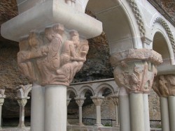 | Detalle del claustro. Encima se puede apreciar la roca que cubre a todo el conjunto. |