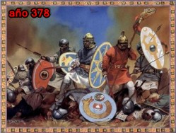 | Año 378 - La caballería bárbara, principalmente goda, equipada con estribos, aniquila a las legiones romanas en la batalla de Adrianópolis y asesina al emperador Valente. |