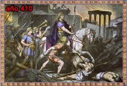 | Año 410 - Alarico, rey de los visigodos, conquista y saquea la ciudad de Roma. |