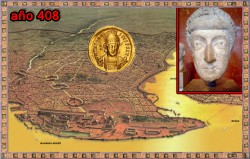 | Año 408 - Arcadio muere y se proclama emperador en Constantinopla a su hijo, TEODOSIO II. |