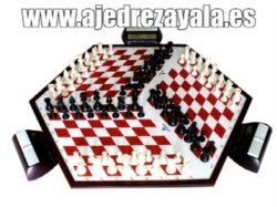 El ajedrezayala es el único tablero de ajedrez para tres jugadores, que no rompe ninguna de las reglas del ajedrez convencional.Permite a tres jugadores disputar de forma simultánea dos partidas contra dos rivales distintos, jugando al mismo tiempo una partida con blancas y otra con negras. http://ajedrezayala.es/