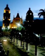 | La Catedral vista de noche, ubicada en la Plaza Principal o Plaza 24 de Septiembre |
