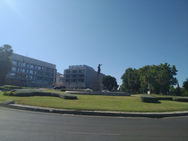 .Seguimos a la derecha por el Paseo de Roma, superando el área Arqueológica de Morerías, llegando hasta nueva rotonda en cuyo centro está el monumento a Octavio Augusto... (km 0,5)