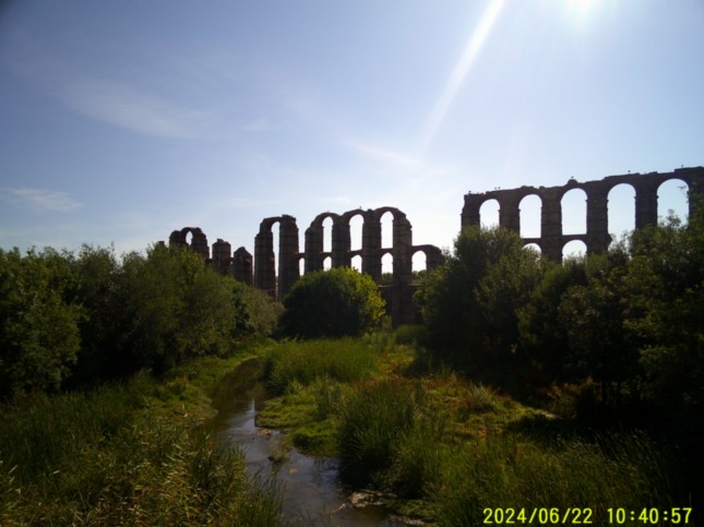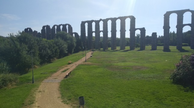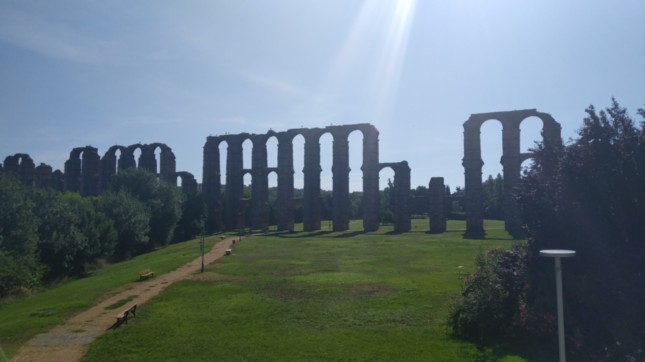 .Data de inicios del I d. C. La arquería se encuentra actualmente bastante bien conservada, sobre todo el tramo que salva el valle del río Albarregas.