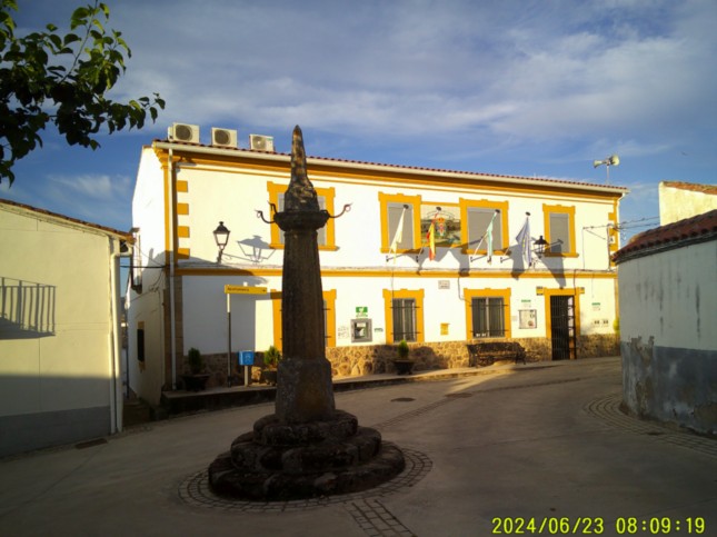.Seguí por la calle Virgen de Guadalupe, Plaza General Mola, calle Extremadura hacia la derecha, calle General Mola de nuevo por la derecha, llegando a la Plaza de España, (km 8,2) donde está el Ayuntamiento y el Rollo Jurisdiccional...