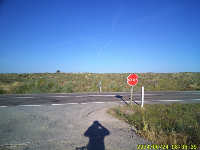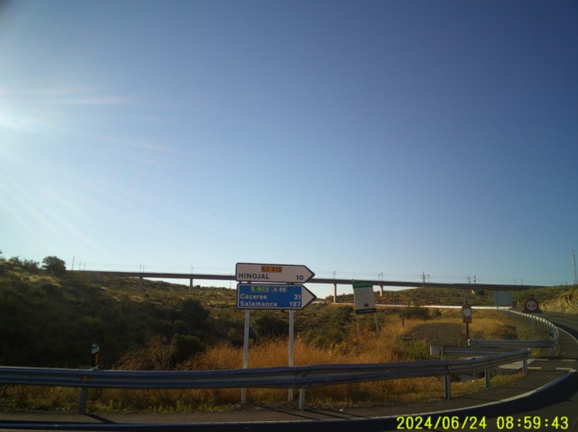 .Continuamos casi 4 km por la carretera, superando un cruce con un camino a la izquierda y por la derecha la carretera EX -373, (km 18.950) que llevaría a Hinojal que obviamos...