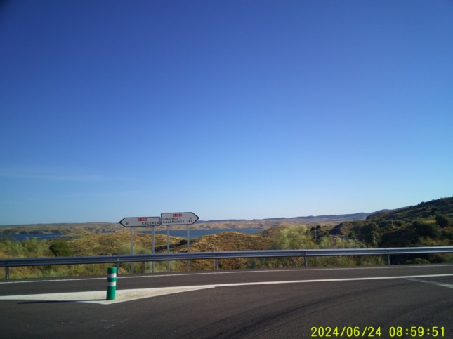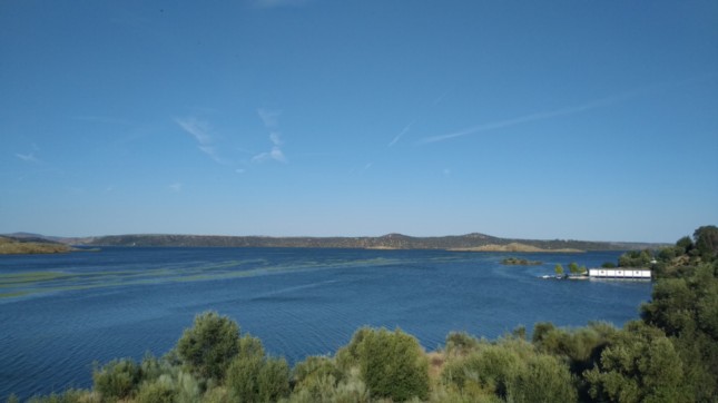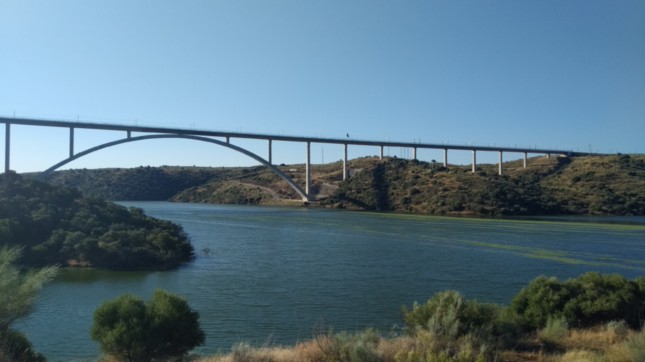 .Sobre el arcén vamos a salvar el curso del río Almonte, uno de tantos que recibe el Tajo y que forman el extenso embalse de Alcántara.