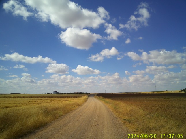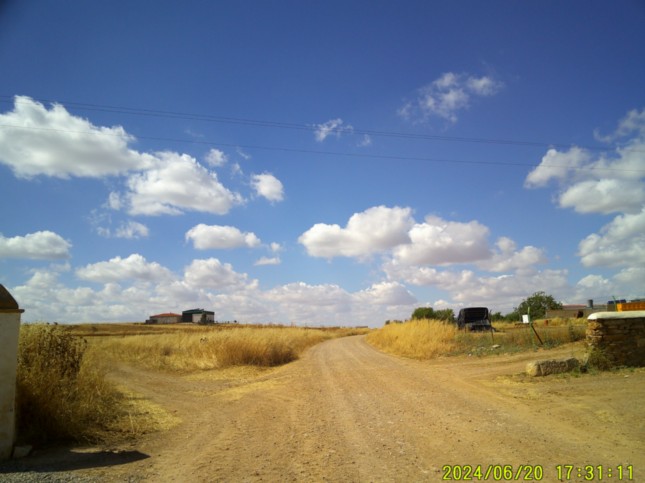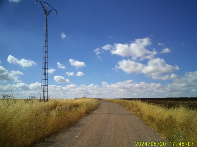 ... llegando tras esos 2 km a este punto donde tenemos un amplio camino que nos llevaría a la población de Medina de las Torres. (km 16,625)