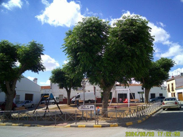 ... seguimos por las calles Pizarro, Olmo donde está la ermita del Santo Cristo a la izquierda, (km 0,2) Plaza del Olmo, (km 0,3) donde está el Parque del Olmo, que vemos en esta fotografía...