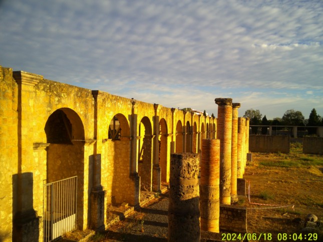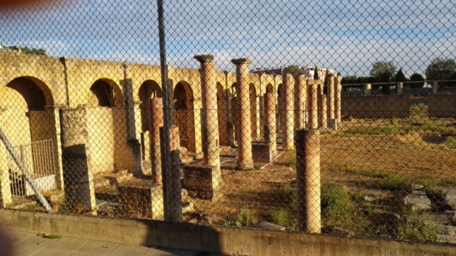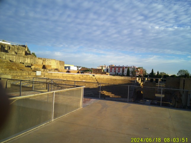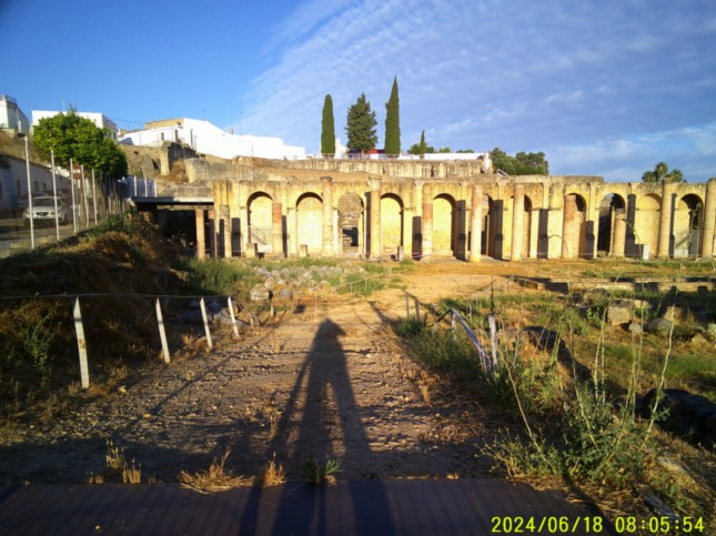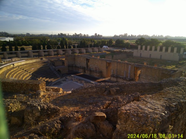.Desde el hostel Itálica donde pernocté dos noches, fuí con la bicicleta a ver el monasterio, pero al ver su horario, abrían a las 10 de la mañana, me dirigí a ver el Teatro Romano, que aunque también cerrado, podía ver parte del mismo desde afuera...