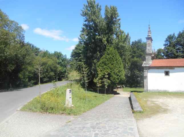 .Como tras ver la ermita y su entorno, se sale del mismo por unas escaleras, tuve que volverme sobre mis pasos para seguir por carretera hacia Santiago.