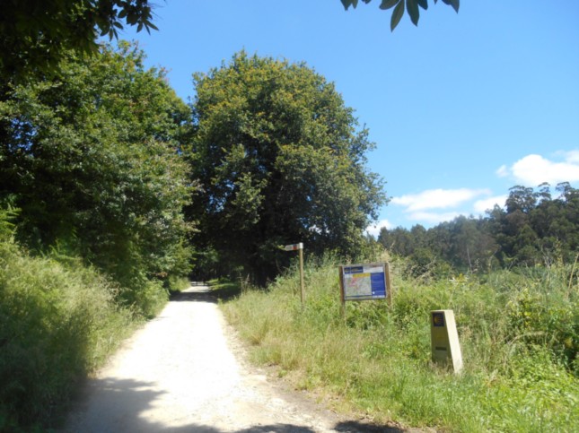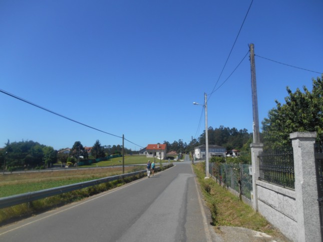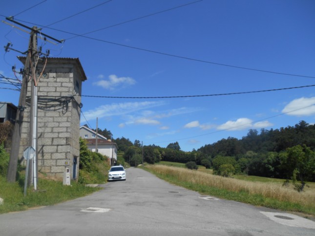 .Por esa calle/camino y tras girar a la derecha, recorremos unos 500 m hasta un cruce de caminos/calles habiendo superado en este tramo una primera Rúa da Centieira, que queda a la izquierda, (km 7,4) para llegar a ese cruce de caminos/calles, (km 7,5) también llamado Rúa da Centieira, que hemos de tomar a la izquierda.
