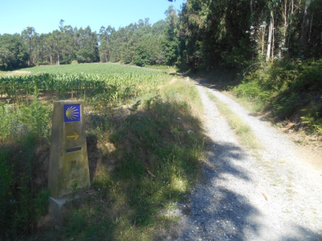 ...siguiendo por la derecha, bien señalizado por ese mojón del Camino en Galicia...