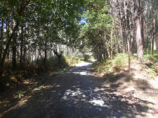 .Desde el albergue, a la derecha, retomamos el camino ancho que se adentra en el bosque de Vedra.