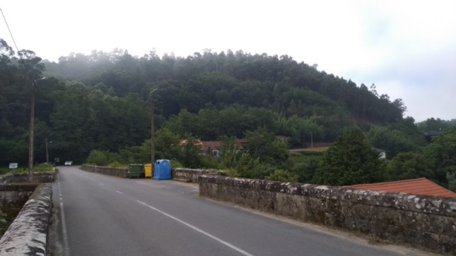 .Me giré sobre mis pasos e hice esta fotografía del arcen de la carretera sobre el mismo puente medieval de Ponte Ulla.