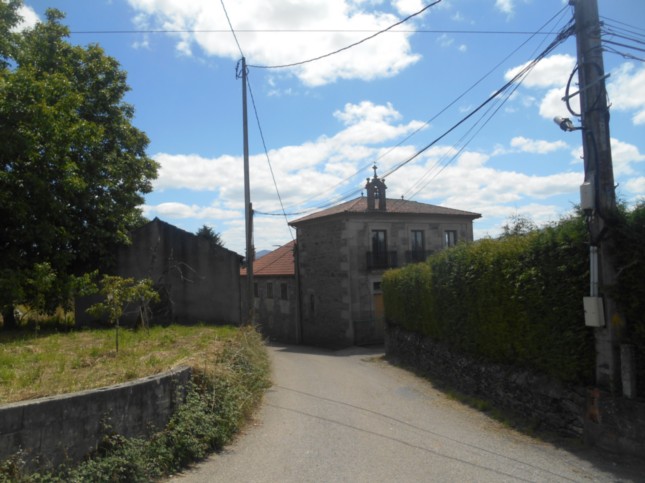.Una vez visto el Pazo y haciendo un recorrido circular por esa calle Bendoiro de Abaixo, llegamos a la calle Xubín que tomamos a la izquierda, (km 2) y enseguida llegaremos al punto donde abandonamos el Camino, (km 2,1) para ver el Pazo de Bendoiro, siguiendo por la izquierda.