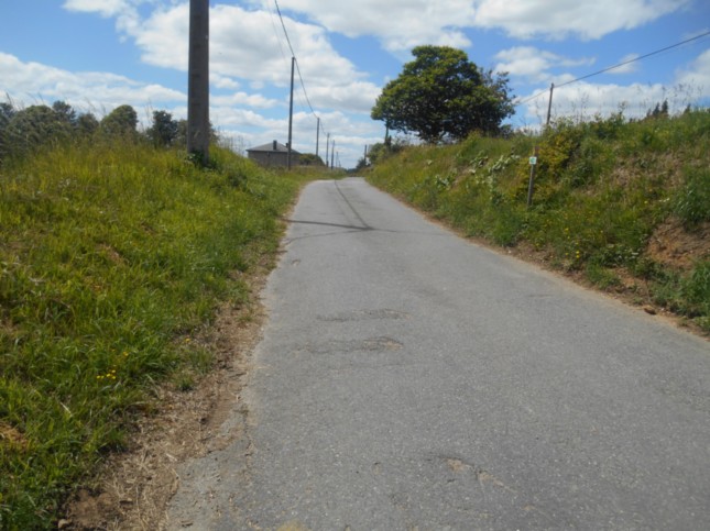 ...y una vez visto el pazo, volvemos a la EP-6004, (km 4,550) y seguimos por el camino/pista que hay enfrente del mismo, recorriendo 250 m hasta el camino/calle que viene por la derecha, llamado de Borralla, punto en el que retomamos el Camino. (km 4,8)