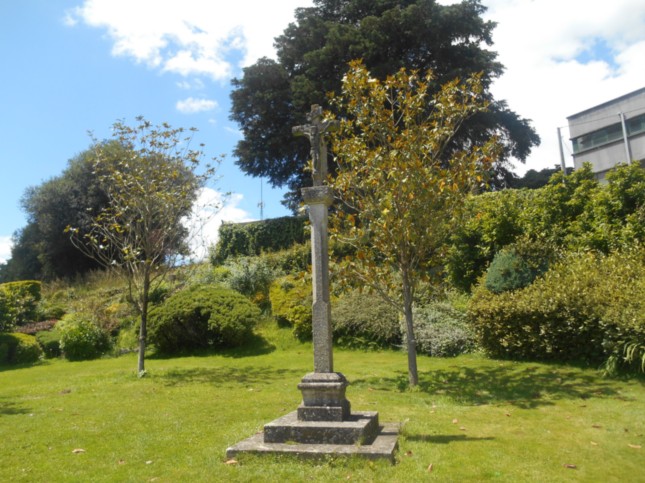 .En el centro del jardín este cruceiro sobre cuádruple pedestal.