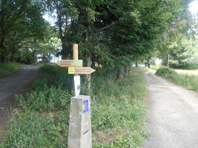 ...parciales de 175 m bifurcación de caminos, que va por la izquierda a la aldea de Campo, (km 17,1) que obviamos, justo al lado del albergue turístico Donsión, siguiendo por la derecha.