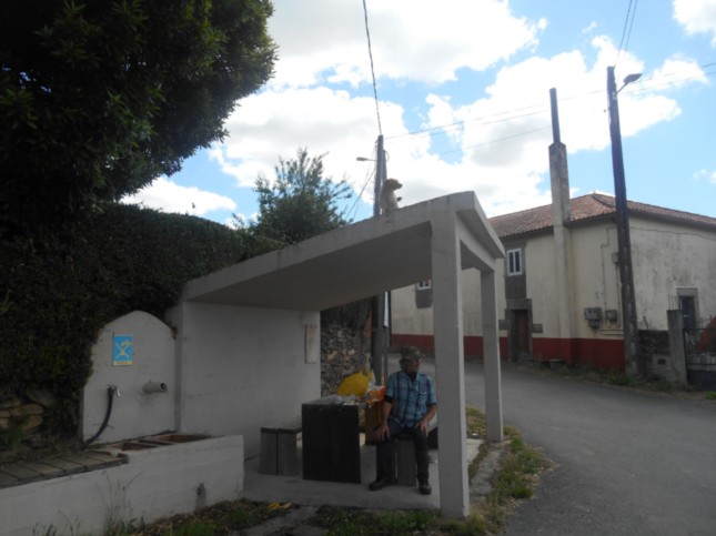 .En este cubierto, vemos a un peregrino, inglés descansando y reponiendo fuerzas al que saludé y me saludó con los consiguintes saludos del Camino, es decir..."Buen Camino".