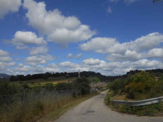.Seguimos rectos y cruzamos las vías del tren y enseguida giro a la izquierda de 60º, habiendo recorrido en este tramo 190 m y superado un cruce de caminos antes de las vías del tren. (km 14)
