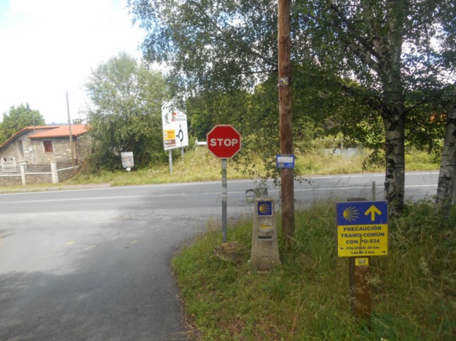.Tras 1,4 km llegamos a la PO-534, superando en este tramo al menos un camino a la izquierda y una senda a la derecha. (km 12,7)