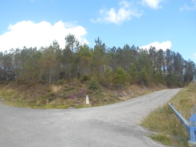 .Al final del camino recorrido, se llega a este punto, una carretera local y asfaltada que hay que tomar a la derecha tal y como indica ese monolito jacobeo...