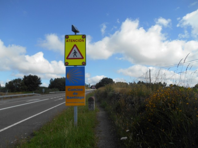 .Las señales del Camino, nos indican bien a las claras que hay que seguir por la izquierda.