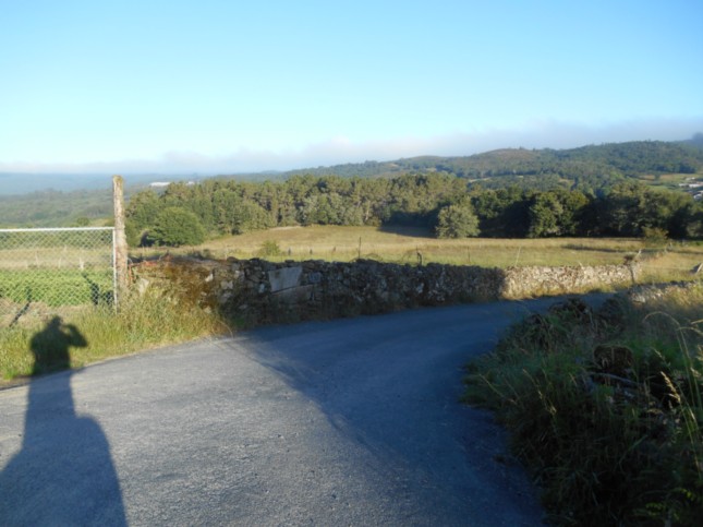 ...salimos por pista asfaltada, (km 15,6) y tras recorrer 360 m, tenemos un camino a la izquierda, que nos llevaría a ver las aldeas de O Pazo, Alén y Outeiros, aunque el Camino como tal va de frente por donde va ese peregrino, que también pernoctó en el Albergue de Peregrinos de Oseira, pero yo elegí esta pequeña alternativa.