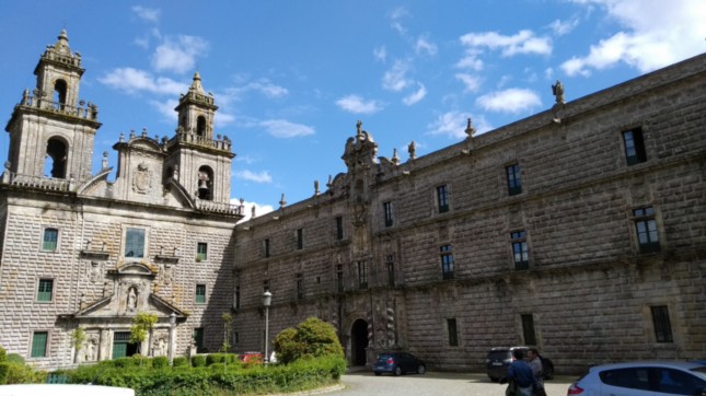 .Una vez atravesado, tenemos a nuestro frente el compás del monasterio: la fachada de la iglesia a un lado y la del monasterio en el frente haciendo ángulo recto.