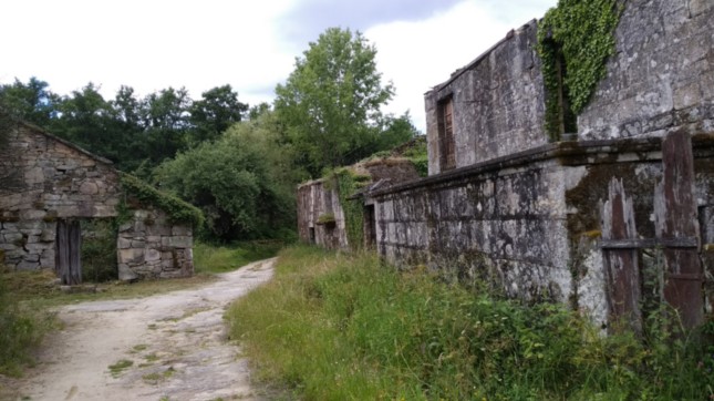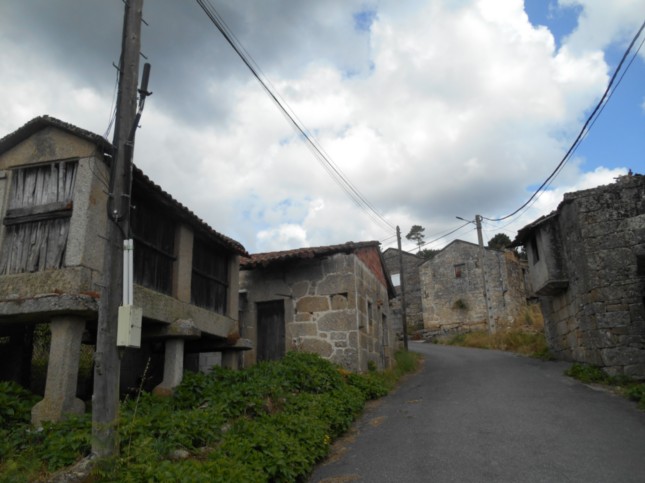 .Continuamos por un camino, junto a esos hórreos ruinosos, y tras 1,9 km entramos en Sobreiras…