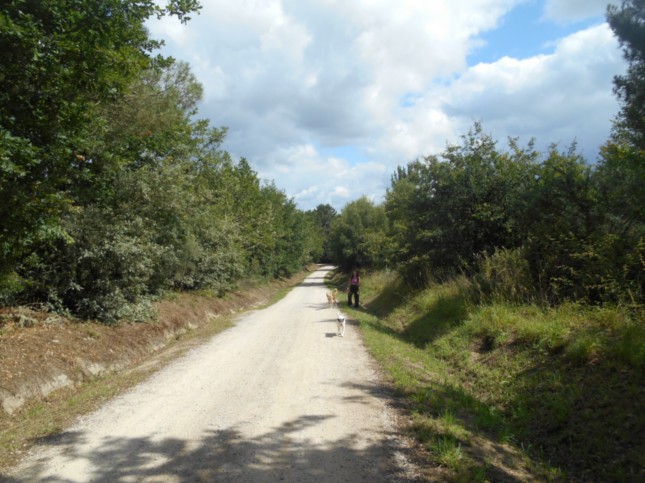 .Fotografía en ese tramo de una chica con dos perros a la que me paré a saludar.