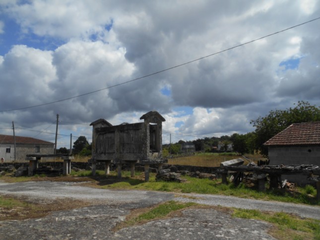 .Salimos a la nacional y justo enfrente tenemos una senda por la que enseguida llegamos a Bouzas, (km 17,6) en unos 100 m estamos al lado del conjunto de hórreos ruinosos, (km 17,7) y sin nada más que observar, salvo su arquitectura civil.