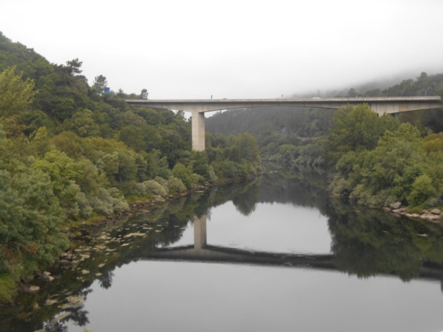 .A la altura de esa rotonda, me giré a la derecha cuando volvía a superar por arriba el Río Barbaña e hice esta fotografía del mismo, ya próximo a desembocar sus aguas en el Río Miño.