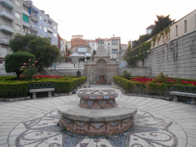 .Tras pedalear por el mismo unos 600 m lo dejamos, saliendo a la Avenida Pardo de Cela frente a la rotonda donde se ubica la “Fonte Quente”. (km 1,3)