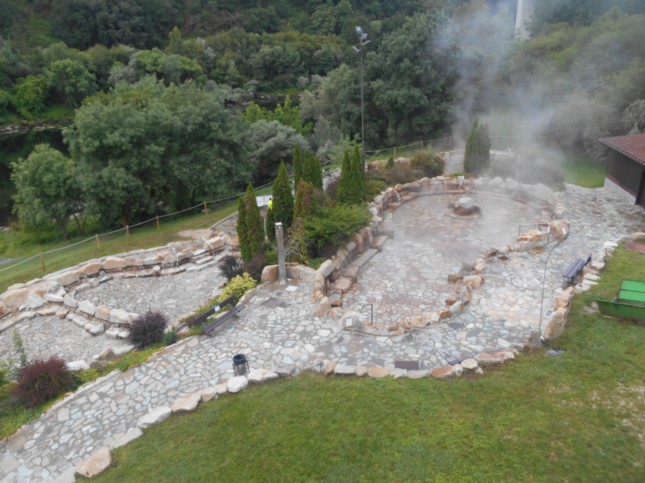 .Todo el recinto está alimentado por varias surgencias manando a temperaturas de entre 65 y 72º C, algunas de las más calientes de la Península.