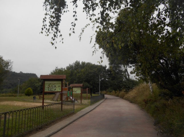 .Enseguida un parque deportivo a la izquierda para después llegar hasta un nuevo parque infantil, donde hay un aparcabicis, (km 5,3)