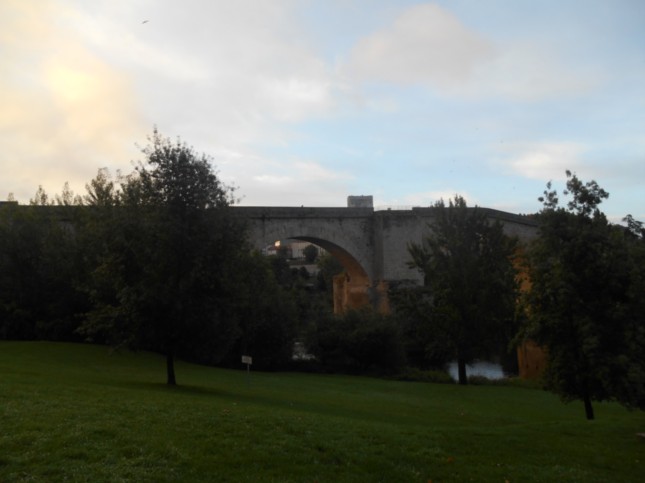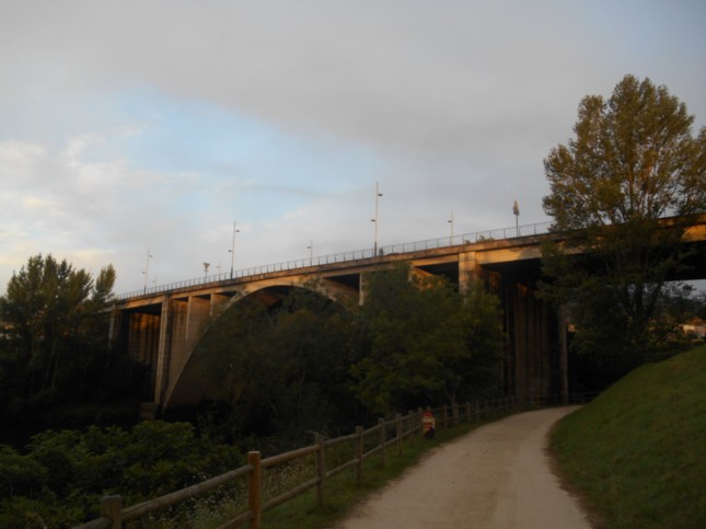 .Una vez que hemos llegado al camino de ese parque fluvial, que tomamos a la derecha, seguimos por el mismo, superando por debajo el Puente Romano, (km 2)