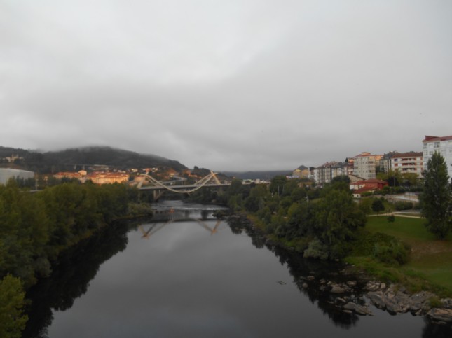 .Seguí ahora para hacer el trayecto que suele hacer el tren turístico por el Paseo Fluvial ahora del Río Sil, siguiendo por esa calle buscando el Puente Romano, superando la rotonda Fonte Quente, la Avenida Pardo de Cela, Rúa do Progreso donde a la derecha está la Plaza Don Bosco con el Colegio Plurilingüe de los Salesianos María Auxiliadora a la derecha y a la izquierda la Capela de Nosa Señora dos Remedios.