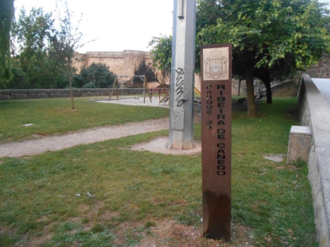 ...tras llegar a la altura de la Rúa Ponte Romana, (km 1,8) y por la derecha bajar al Paseo Fluvial del Rio Miño, superando previamente el “Parque da Ribeira de Canedo".