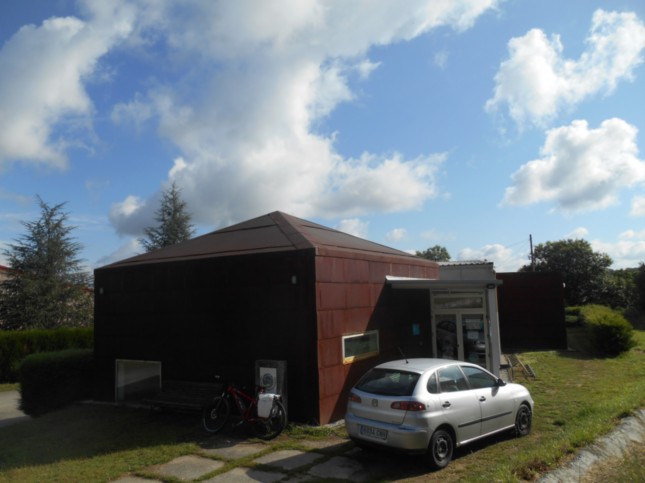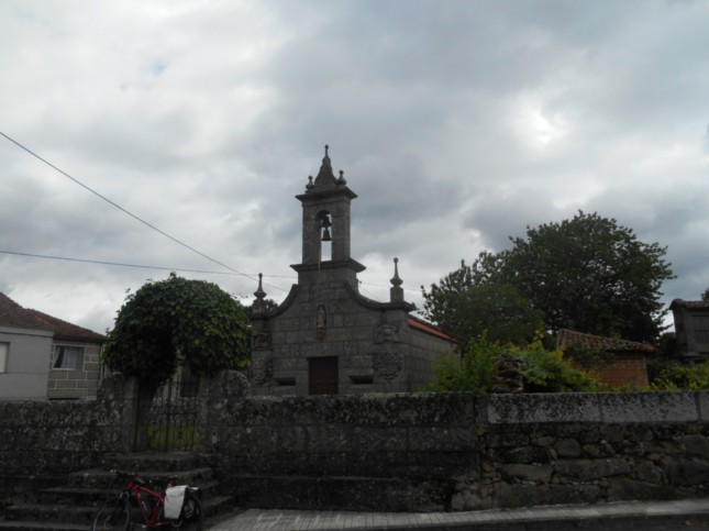 .Tras ver la Ermita y el Cruceiro en 340 m estamos al lado del cementerio, (km 1,1) donde veremos la iglesia que hay en el mismo, habiendo pasado al lado del Centro de Salud, por la OU-102, y la rúa Adega.