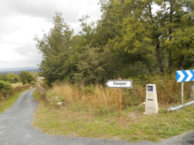 .Tras 1 km por la OU-102, llegamos hasta Gaspar del Concello de Paderne, donde dejamos por un momento la carretera, en este tramo tenemos una carretera a la izquierda que va a Lamela (km 6,8) y unos metros después el camino que por la izquierda nos conduce a Gaspar, (km 6,950) bien señalizado.