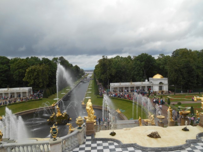 La visión de este gran conjunto (dicen que el mayor del mundo) es espectacular. Todo ello desemboca, diseccionando el parque, en el Gran Canal o el de Sansón, cuya fuente queda a sus pies. El adorno del conjunto se realza con 173 juegos de agua y 37 monumentales esculturas doradas, a cual más bonitas.
