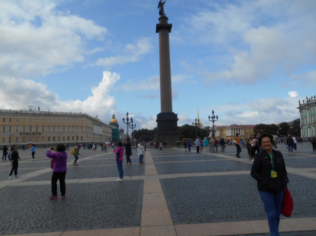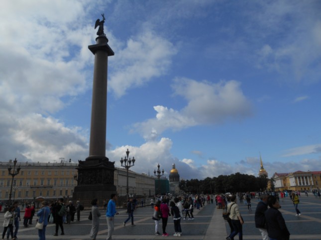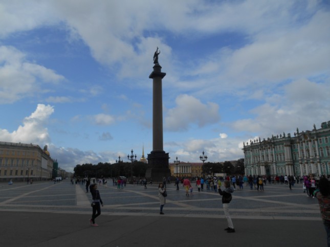 Vista de la plaza del Palacio con la Columna de Alejandro en el centro de la misma.