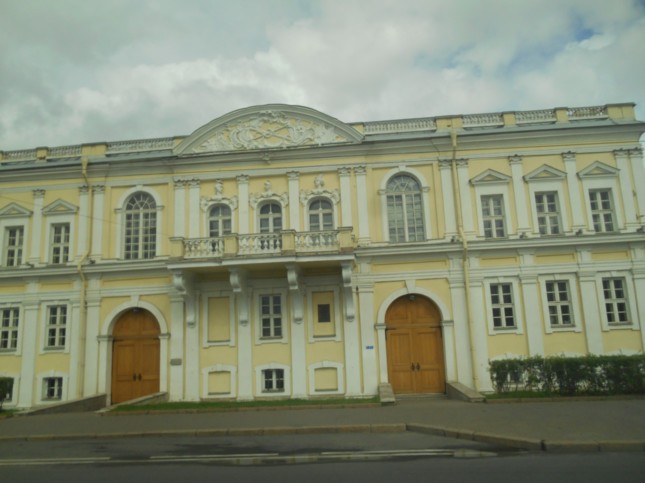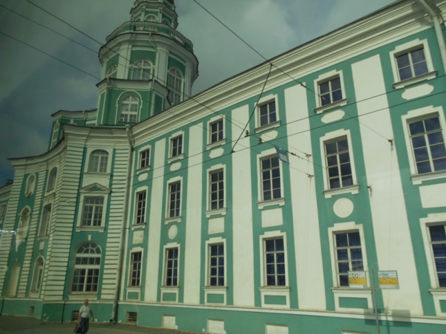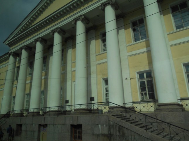 Fotografía de la Facultad de Filología de la Universidad de San Petersburgo, desde el autobús.