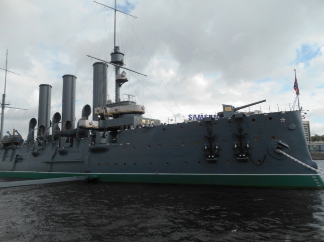 Fotografía de este crucero, Aurora, anclado en el embarcadero de Petrogradskaya