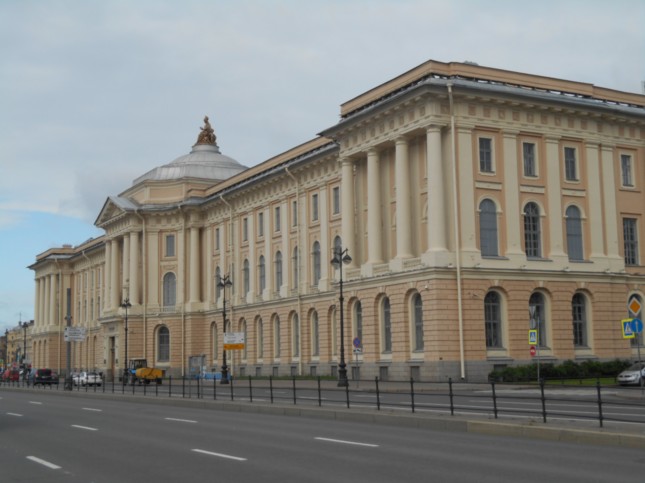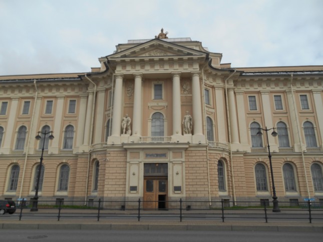 Fotografía del edificio de la Academia Imperial de las Artes, fue fundada en 1757 por el conde Iván Shuválov, favorito de Isabel I de Rusia, con el nombre de Academia de las tres artes más nobles.