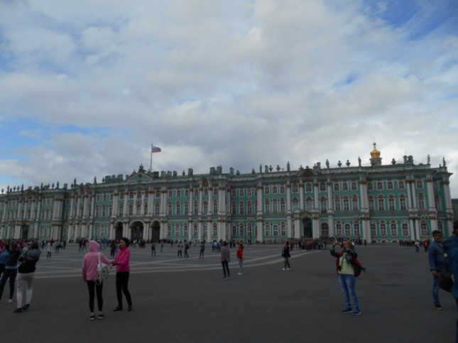Mientras esperábamos para entrar, a la hora prevista, una fotografía panorámica de la Plaza del Ermitage.