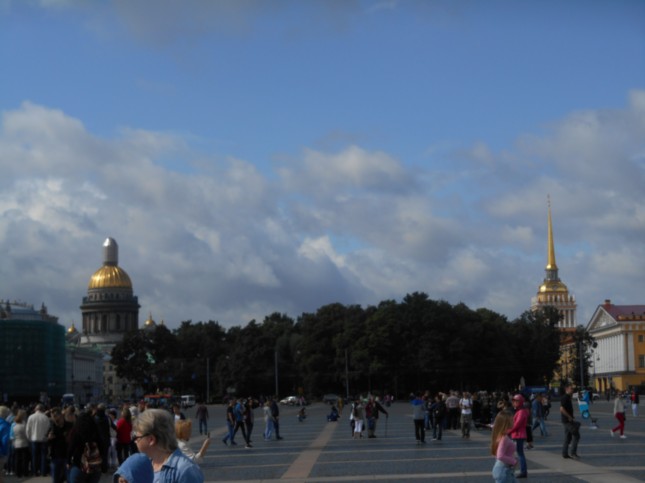 Girándome sobre mi mismo, esta nueva fotografía, donde ahora se ven mejor las cúpulas de la catedral de San Isaac y la del Almirantazgo.