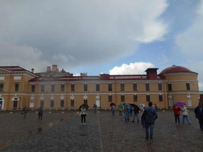 Esperando entrar en la catedral, fotografía del interior de la Fortaleza, concretamente de la Casa de la Moneda en la Fortaleza de San Pedro y San Pablo.